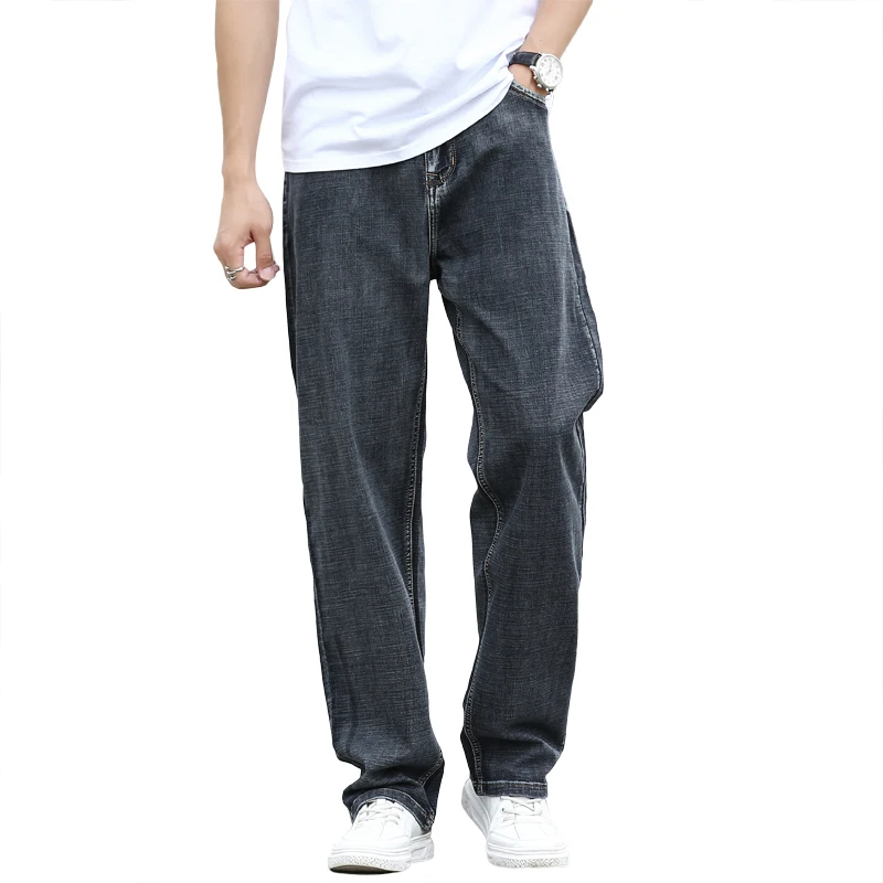 Name: Vaqueros rectos de algodón para hombre, vaqueros de estiramiento fino, holgados, informales, de negocios, talla grande, ligeros, 42 44, para primavera y verano, 2021